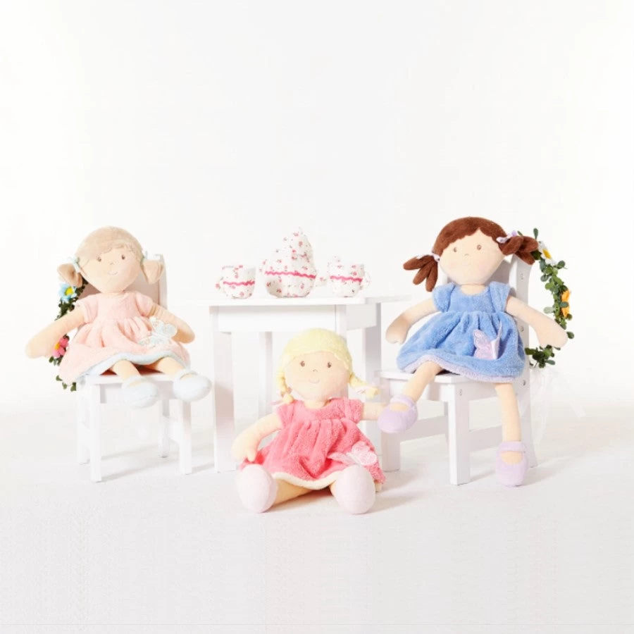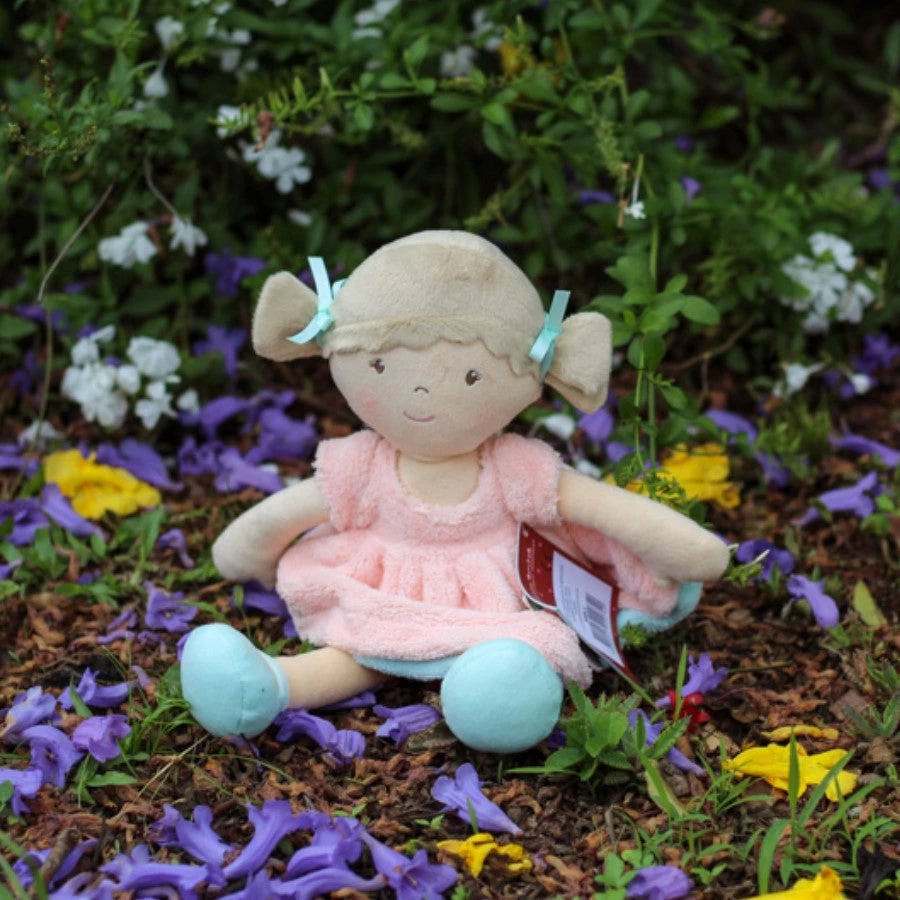 Light brown hair and a baby pink dress, the super soft feel of this doll makes her the perfect comforting companion