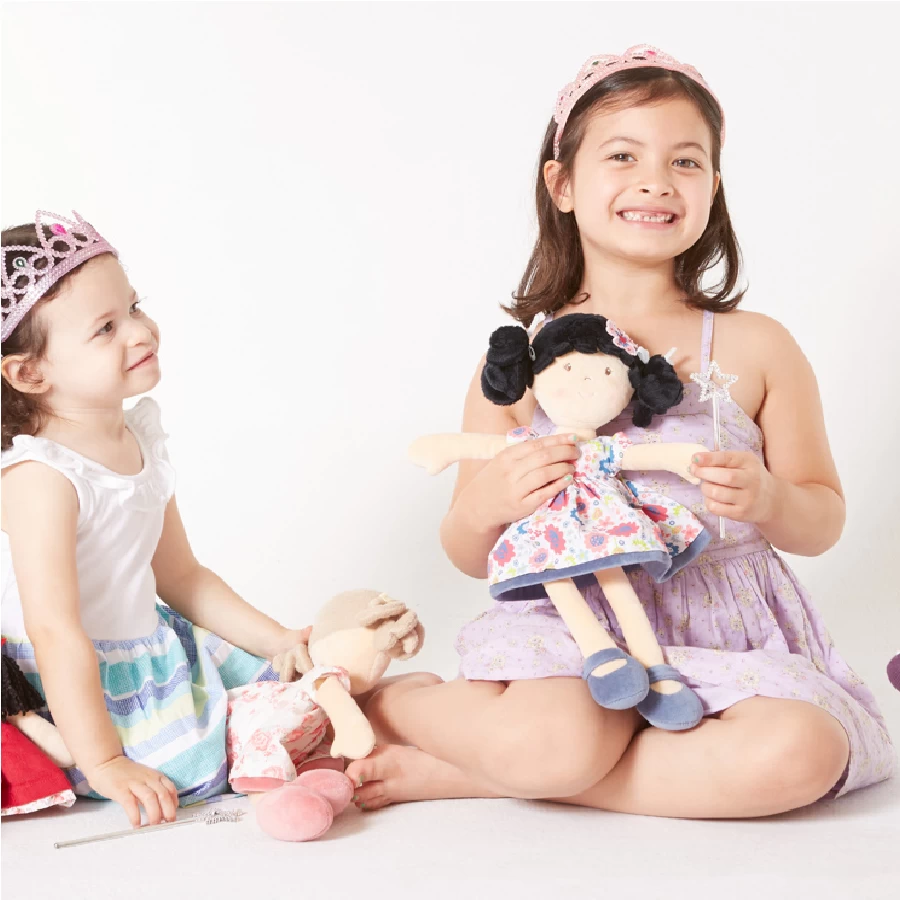 This sweet Flower Kids doll is the one with the lovely black hair. She makes a fantastic friend. She loves dancing and spending afternoons in the garden. Â