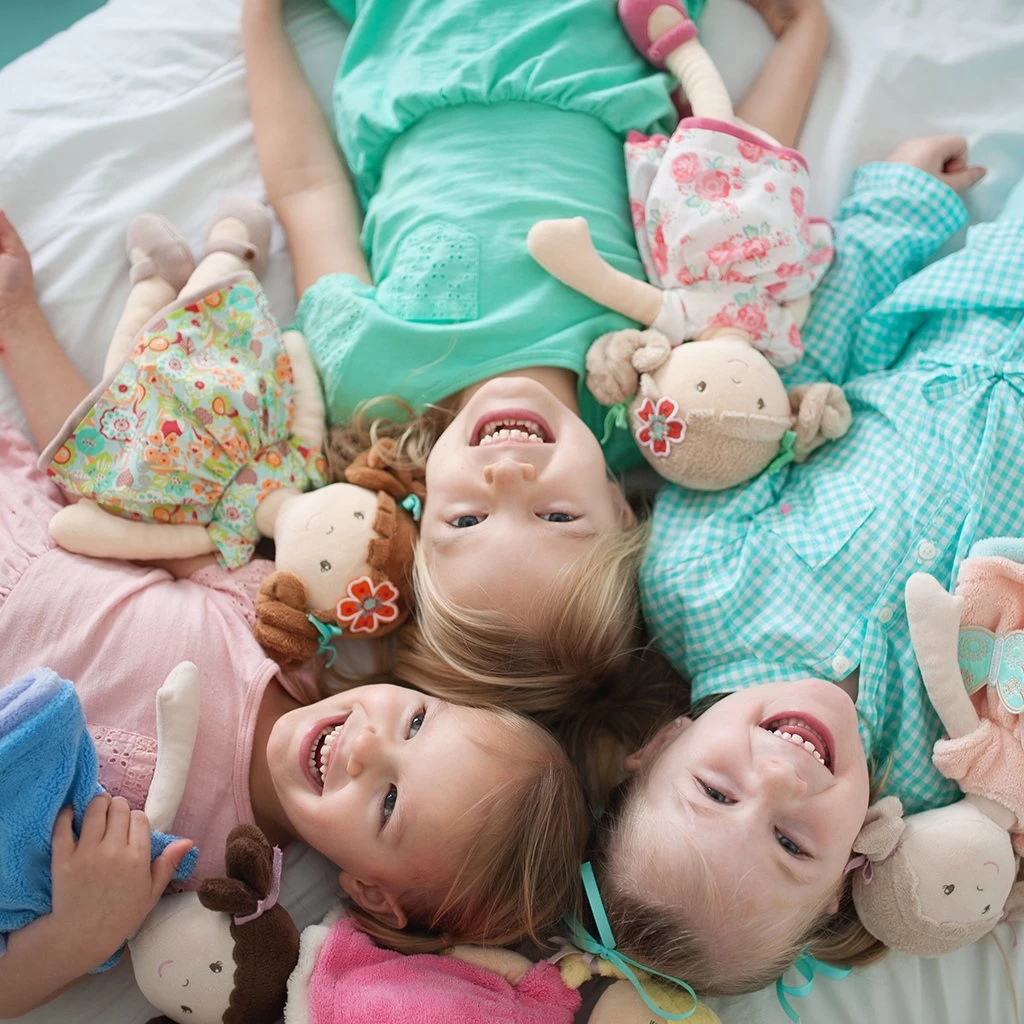 Pigtails and a flower in her hair, this little doll is made super soft and extra cuddly.Â