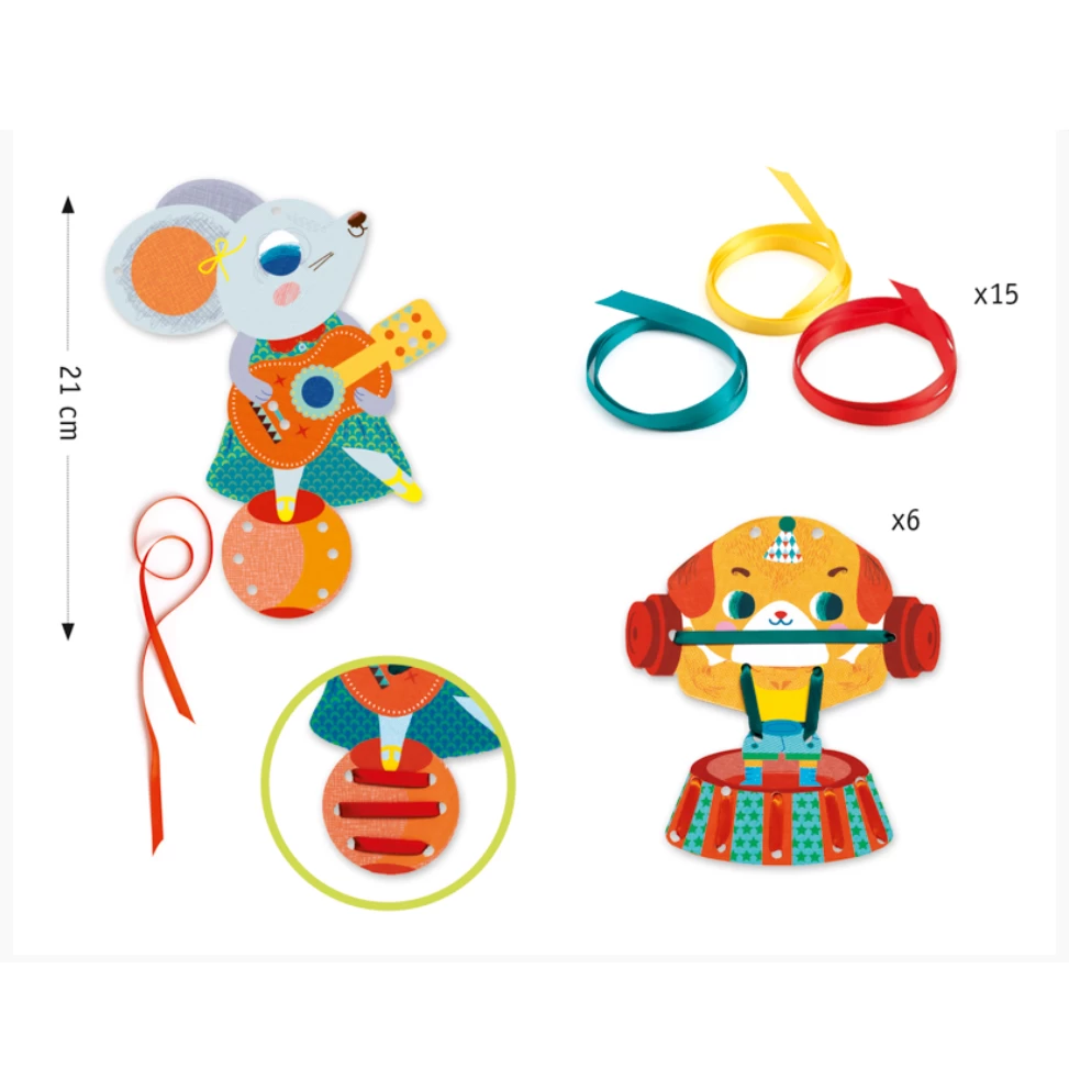Develop your child’s motor skills, with this fun lacing set. Set includes three adorable animals and coloured ribbons. A fun and interactive activity to prepare children for writing by building their hand muscles.