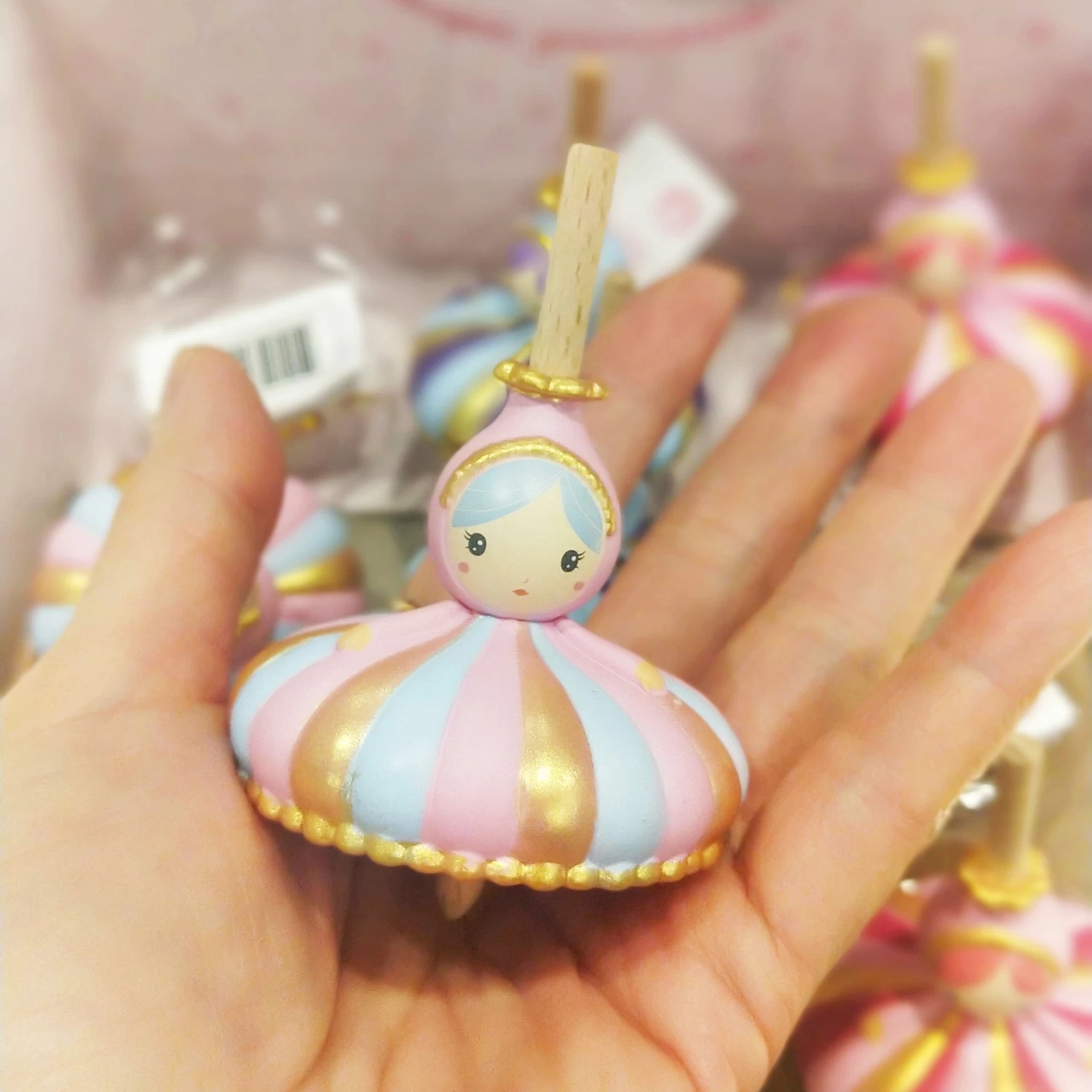 These beautiful spinning tops are in the shape of a princess.