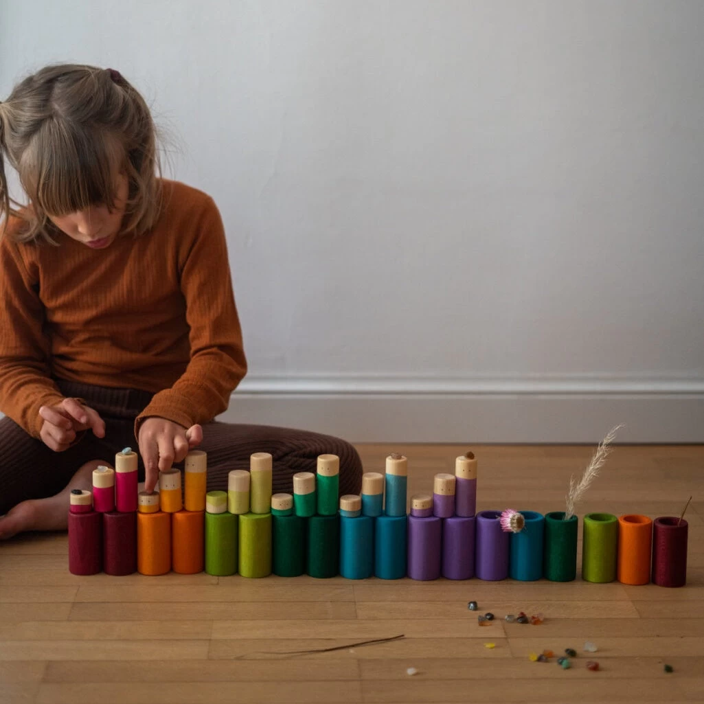 This brilliant collection comprises 36 pieces in pure rainbow colours, opening up a world of possibilities for healthy open ended play.