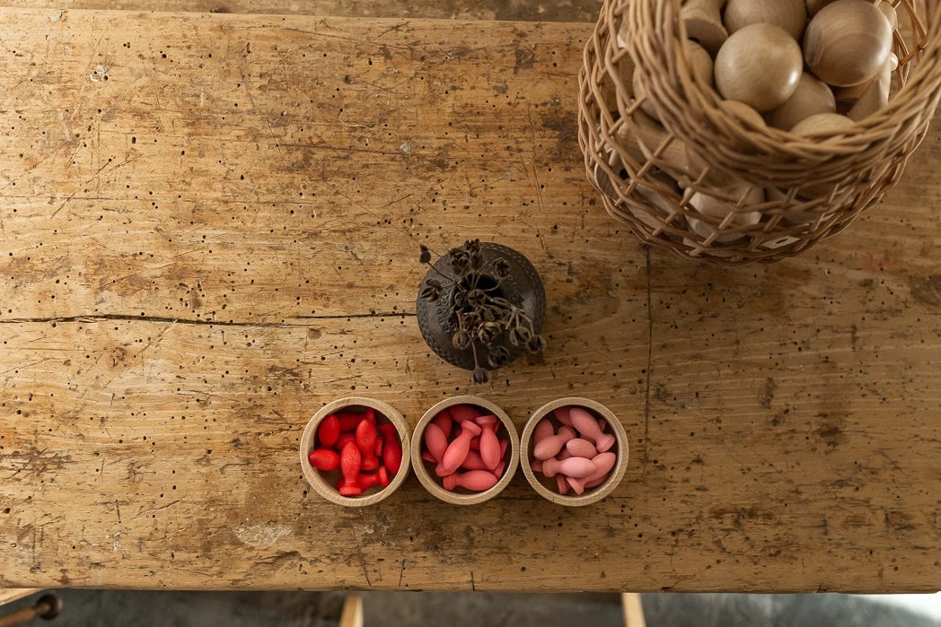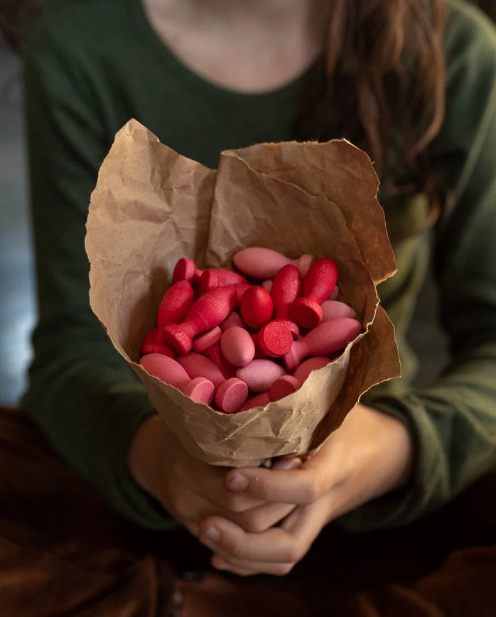 This set of thirty-six little petals in varying shades of red and pink can also be used for developing mathematical skills and thinking, useful as counters. Handmade from sustainably sourced wood and finished with non-toxic colours. Â Grapat Mandala sets are a perfect addition to imaginative play, role play, creative picture making and story telling. The possibilities are inspiring.