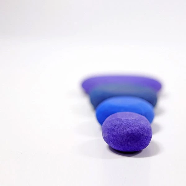 The Dream Pebble set contains 4 smooth wooden pieces in varying shades of violet and purple.