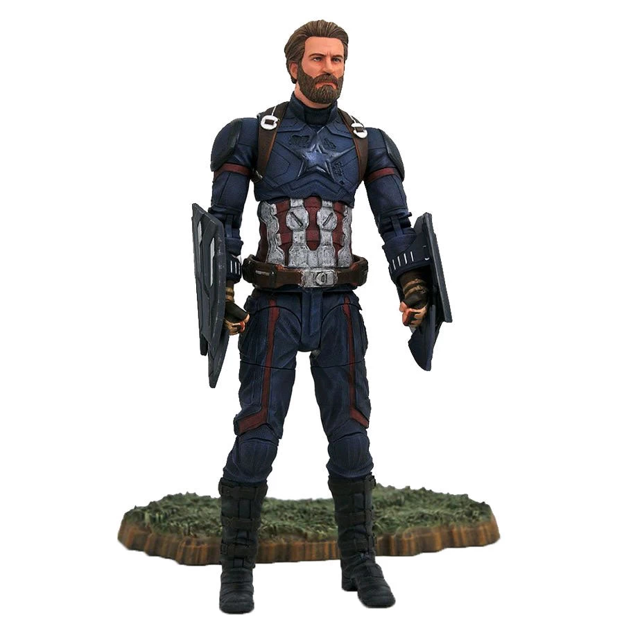 This 7-inch scale action figure of Captain America features approximately 16 points of articulation and interchangeable parts and accessories. Packaged in the full-color, display-ready Select packaging, with side-panel artwork for shelf reference. Sculpted by Gentle Giant Studios!