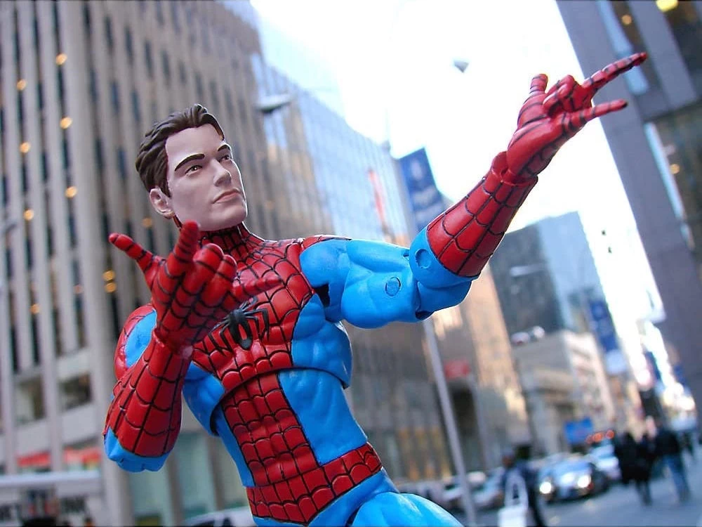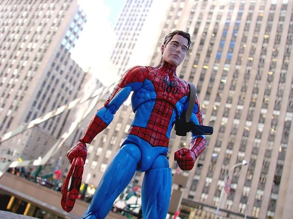 Figure features two interchangeable heads, with mask and without; interchangeable fists, a mask to hold (after being removed), and camera.
