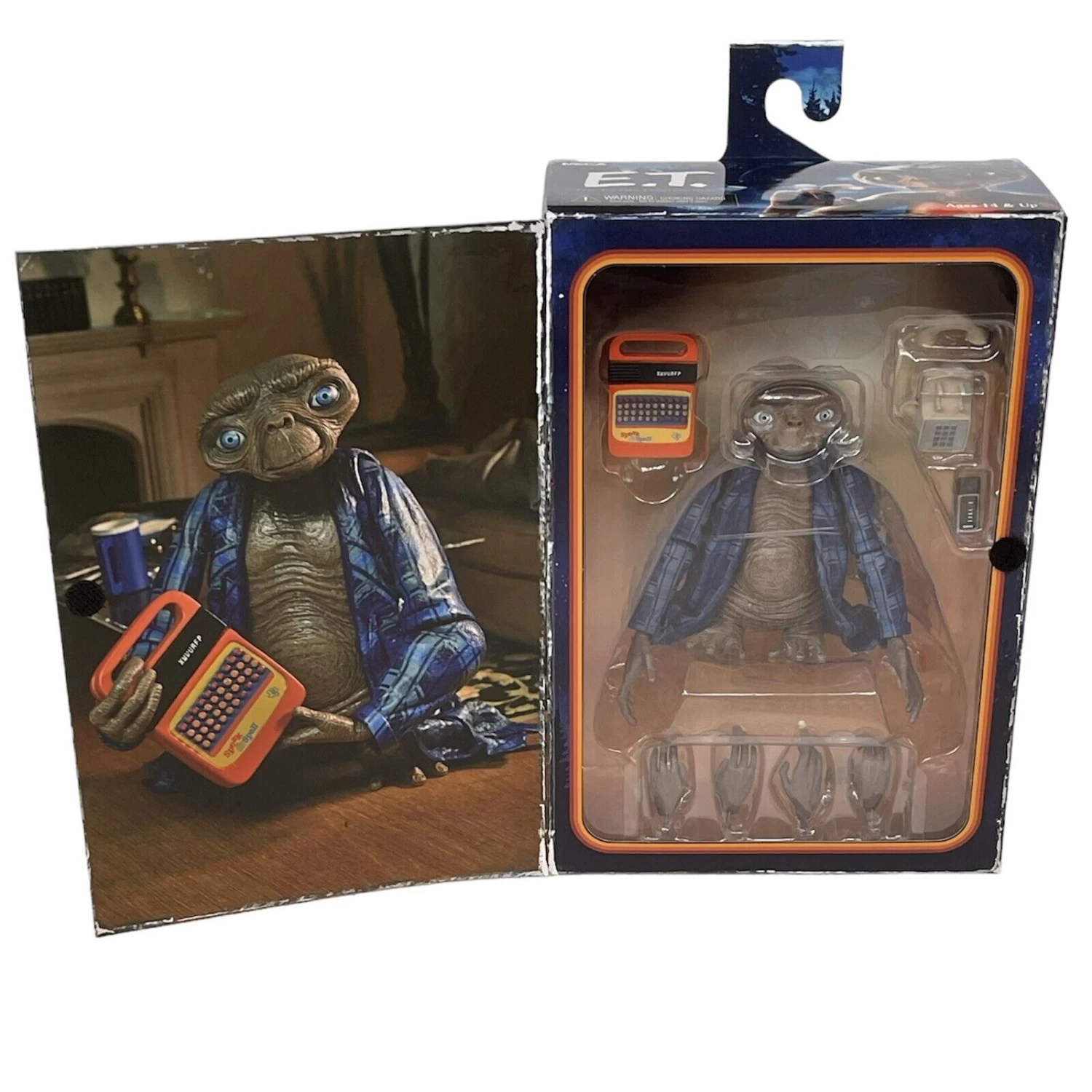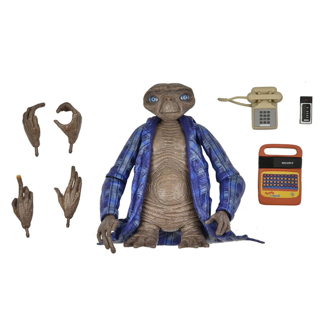Ultimate Telepathic E.T. features incredible life-like detail and wears the blue plaid shirt from the home scenes.