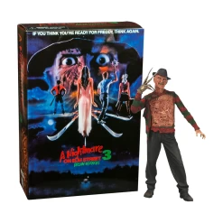Ultimate Part 3 Freddy features plenty of gruesome detail and tons of accessories, including 2 interchangeable heads, 2 pairs of hands, the Elm Street house, Freddy puppet and removable hat. He’s fully poseable and truly terrifying – swap out his regular sweater front to display the tortured spirits trapped in his Chest of Souls!