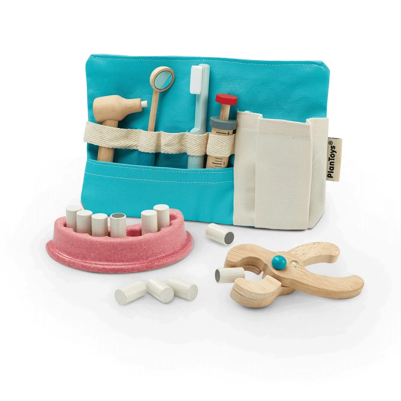 Pretend to be a real dentist! This set teaches children at a young age to understand the importance of tooth care. It includes 4 basic dental tools, 1 toothbrush, 1 set of “teeth” with 3 spare teeth and 1 doctor case.
