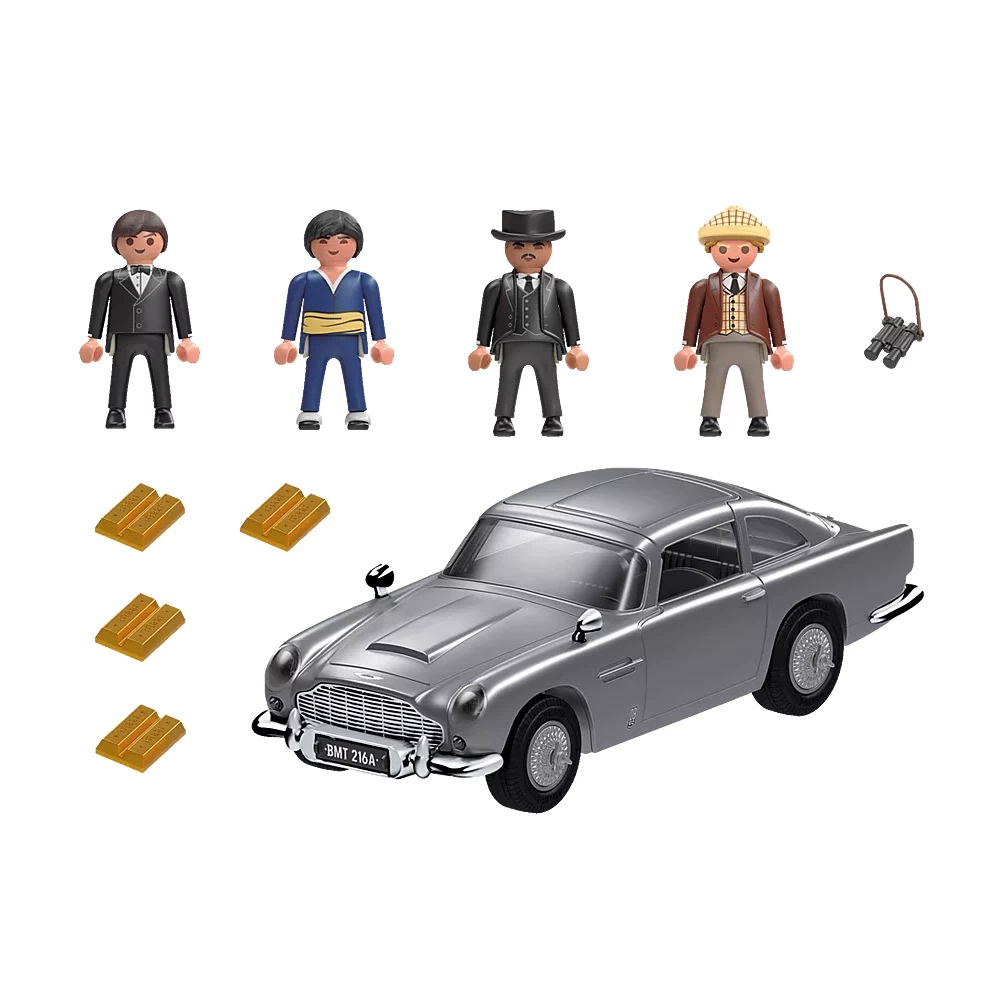 The name is Bond, James Bond and he’s world’s most famous secret agent. For nearly sixty years, the adventures of 007 have thrilled fans all over the world. Each new assignment is an action-packed adventure fuelled with amazing stunts, breathtaking car chases and, of course, all the latest gadgets. In his third on screen appearance in Goldfinger (1964), James Bond drives the iconic Aston Martin DB5 for the very first time. This silver Aston Martin comes with authentic gadgets including revolving number plates, a passenger ejector seat and much more. In this timeless vehicle, 007 out runs all of his pursuers in a spectacular chase and then thwarts the plans of villain Auric Goldfinger. This PLAYMOBIL set is a must-have for all Bond fans!
