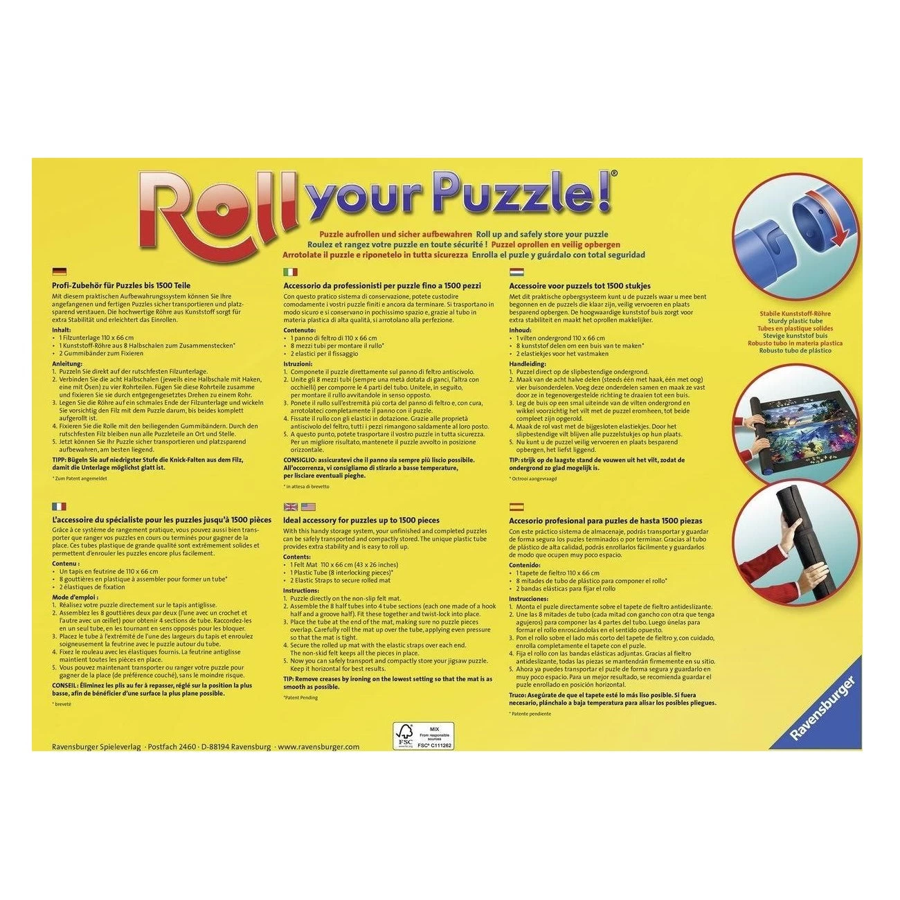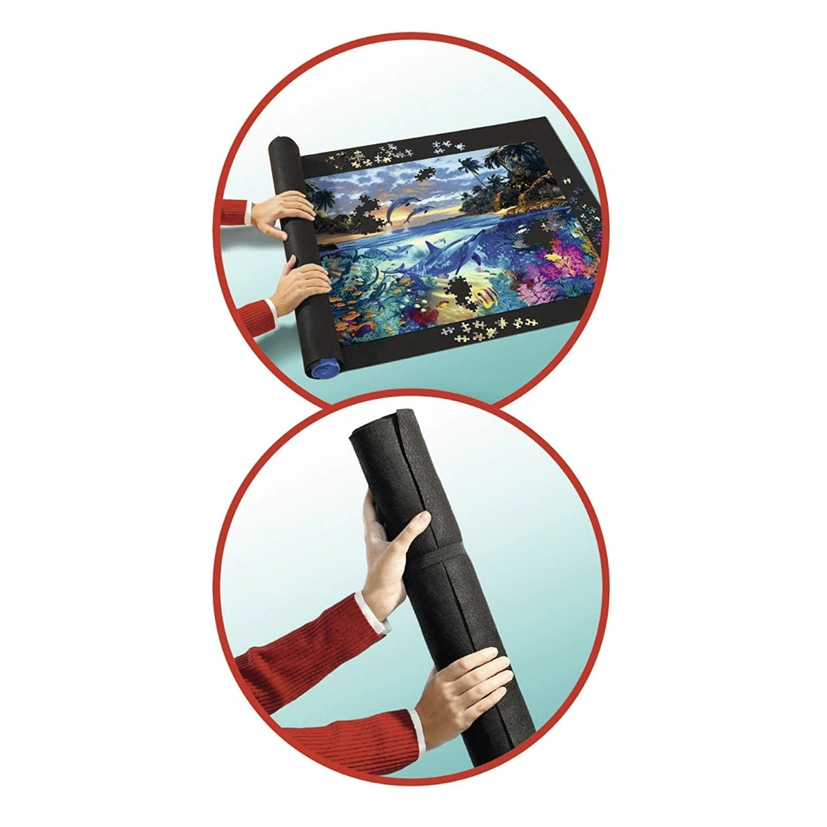 Non-slip felt mat to puzzle on and when you need to reclaim your space, simply roll the mat up using the sturdy plastic tube and elastic bands provided to store your puzzle until you are ready to play again!