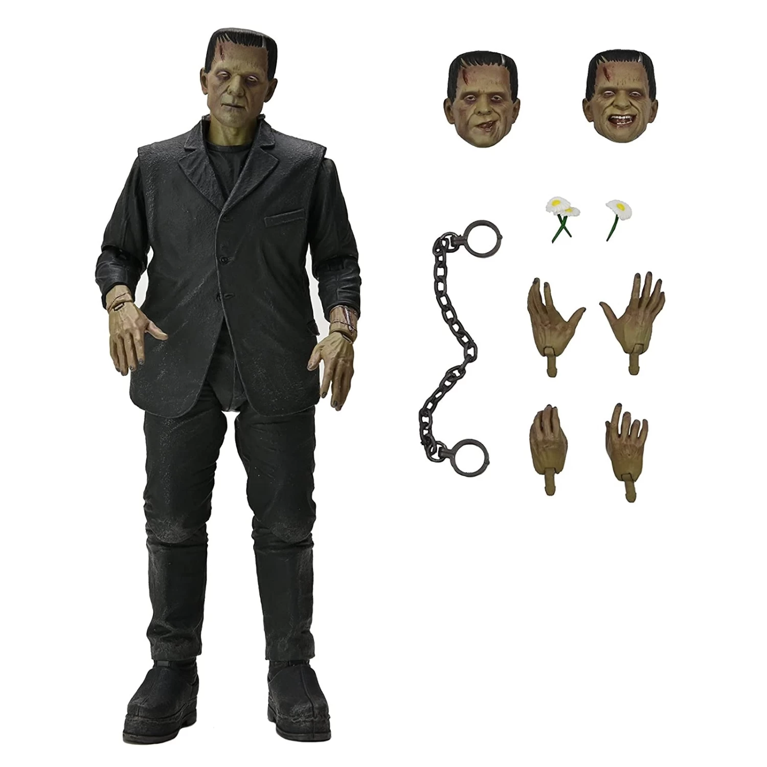 To celebrate the 90th anniversary of the acclaimed silver-screen classic Frankenstein, NECA proudly announces the triumphant debut of Universal Monsters in its Ultimate action figure line! The sculpt captures Boris Karloff’s poignant portrayal of the misunderstood monster in full colour. Standing in 7” scale, the figure comes in premium anniversary packaging with plenty of accessories!