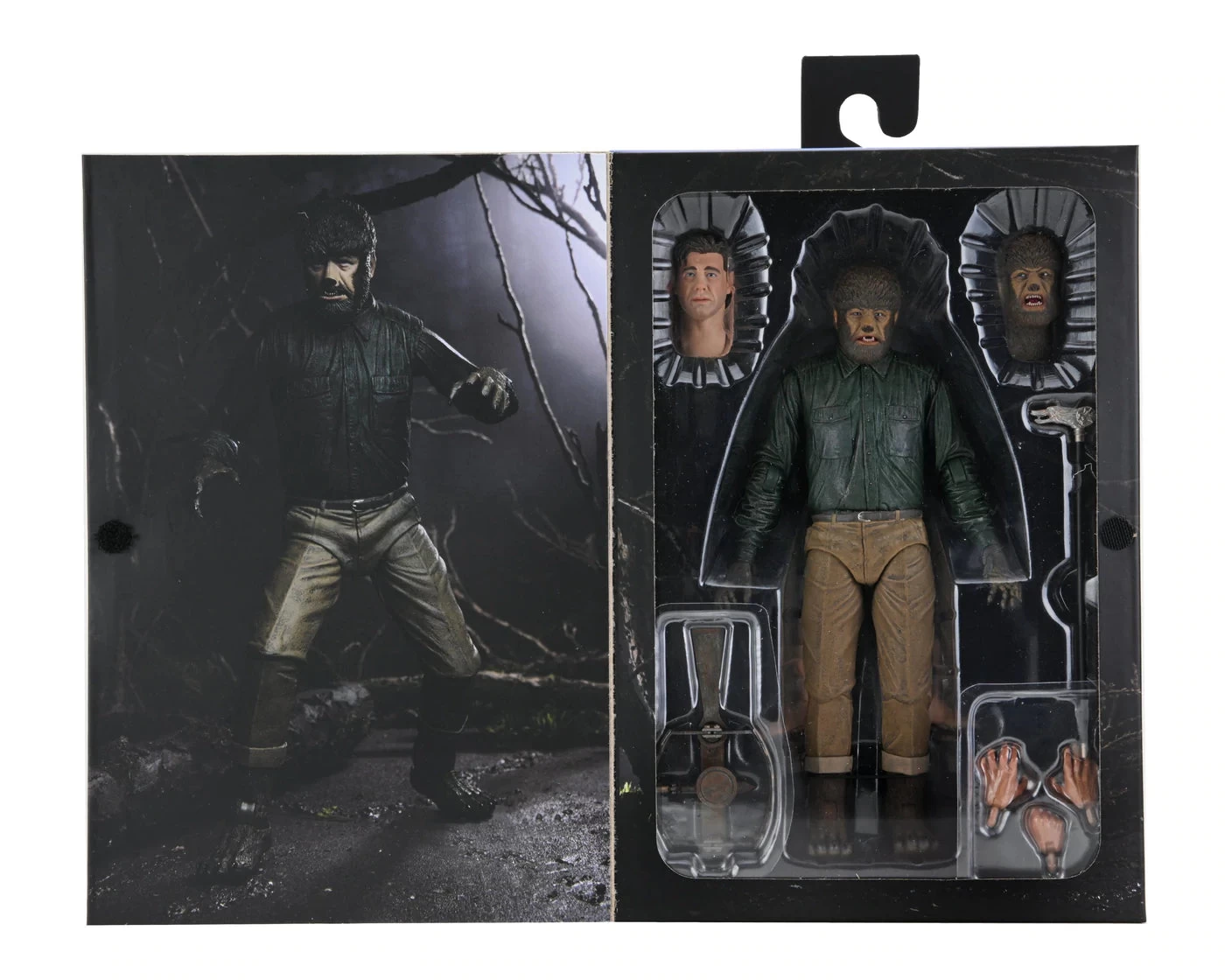 For the 70th anniversary of Universal’s horror film classic, NECA is excited to reveal The Wolf Man in Ultimate action figure form! Starring Lon Chaney Jr., 1941’s The Wolf Man is critically acclaimed for Chaney’s moving performance and the special effects. The figure captures the human and monster sides of this complicated character with interchangeable heads, hands, and lower legs.